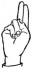 На ћирилици написано МИНА СТОЈКОВАЦ састоји се из 13 слова [?]. Исписано ћириличном једноручном азбуком за глувонеме: